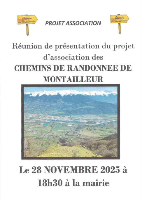 Bibliothèque : Ouverture lundi et vendredi de 16h30 à 18h30. Possibilité d’emprunter ou rendre des livres sur RDV – 04 79 31 44 56 ou mairie@montailleur.fr